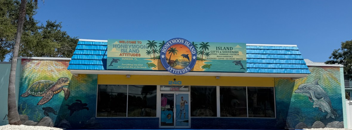 Located on the Dunedin Causeway; gateway to the productive backwaters of Clearwater Bay and St. Joseph Sound, Honeymoon and Caladesi Islands, and the gulf beaches. Honeymoon Island Attitudes is your one stop shop for all your souvenirs, gifts, and beach wear needs before heading out for a great day of fishing, boating or just beaching and relaxing in the sun with an ice-cold beverage.